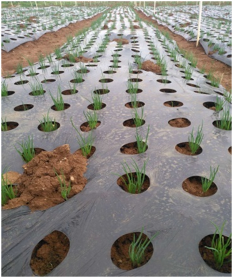 2018年7月16日至2018年9月10日的生長周期里,紅蔥種植戶楊老板在坤禾集團特派員的指導下,其紅蔥種植基地進行坤禾產(chǎn)品應用示范,每畝按照80KG腐熟蛋白生物有機肥+40KG調(diào)酸補鈣農(nóng)用微生物菌劑+2KG農(nóng)益健100農(nóng)用微生物菌劑的用量,在耕地前將三個產(chǎn)品充分拌勻,均勻撒施到示范地塊,接著用耕地機進行耕地,然后理墑蓋膜進行播種。